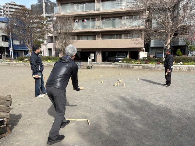 日曜日の朝活。朝7時半からのモルック練習会。本日の参加者は12名。