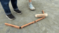 ルールを簡単に説明して、てきとうにチーム分けしてさっそくやってみると・・・、これがもう笑いがでるくらい盛りあがる!年齢も運動神経も関係ない。木の棒を投げて、数字の書かれたピン(スキットル)を倒すだけ。でもその「だけ」が楽しい!初めての人でもすぐに楽しめる!