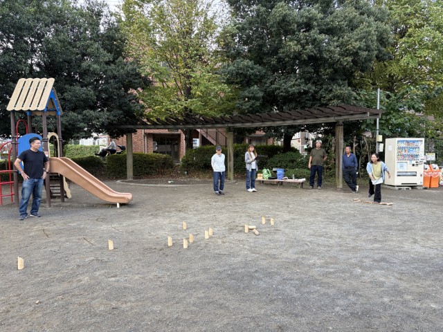 参加者が集まってきて、まずは腕ならしに全員参加の50点個人戦ゲームをやりながら各自に投てき感覚の確認。