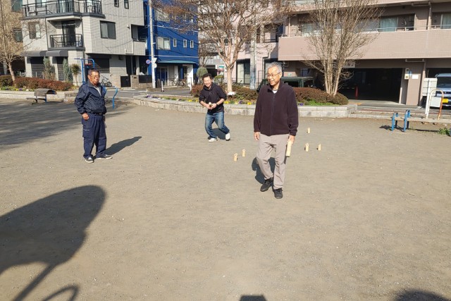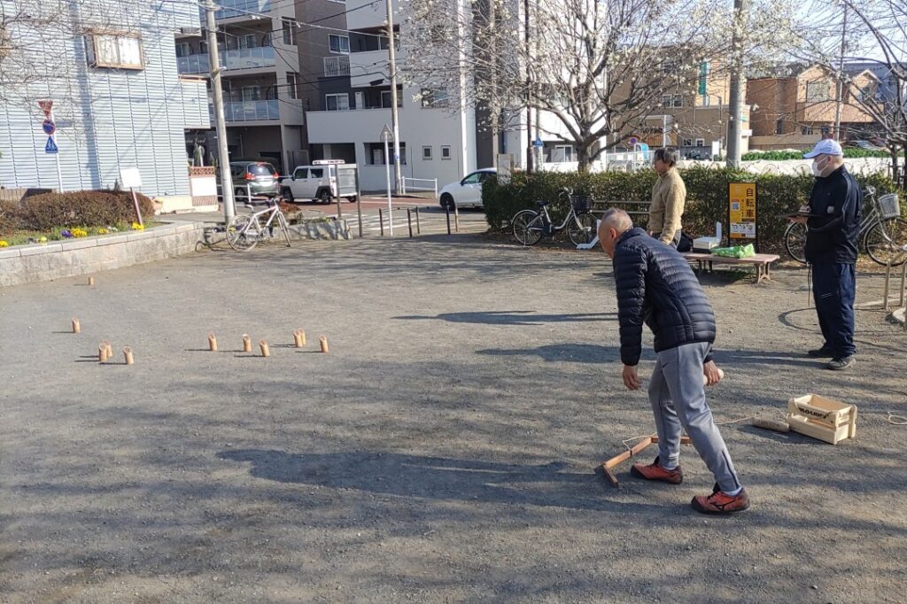 今日は、以前から気になっていたという自治会の悦さんが、初めてモルック練習会に参加してくださいました。
