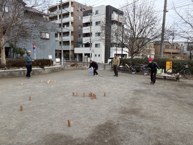 今日はゲストでオーノさんとナンパパさんが参加してくれました。やってみると二人ともモルック経験値は少ないものの、モルック棒をしっかりスキットルに当てていてセンスを感じます。