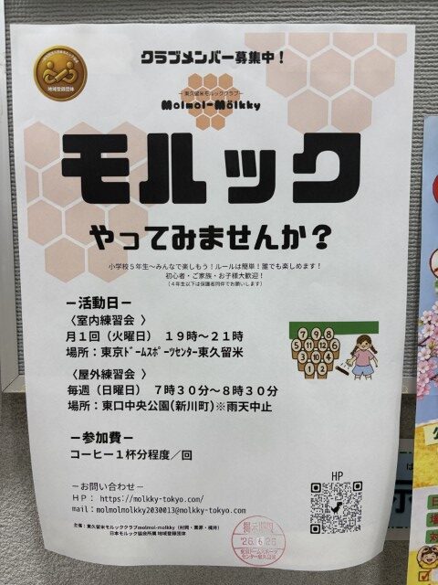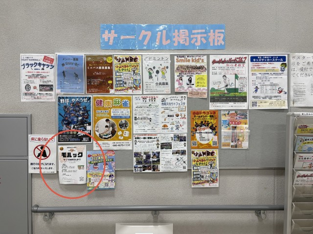 本日、スポーツセンターの掲示板に、東久留米モルッククラブのクラブメンバー募集のチラシを掲示していただきました。