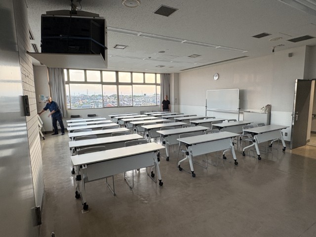 会場はいわゆる「体育館」、、、ではなく、「会議室」