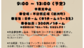 8:00準備開始。9:00受付、9:40大会開始~12:20大会終了・解散