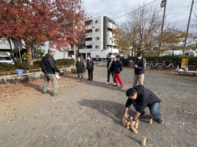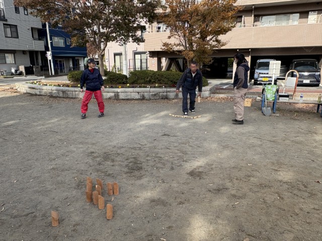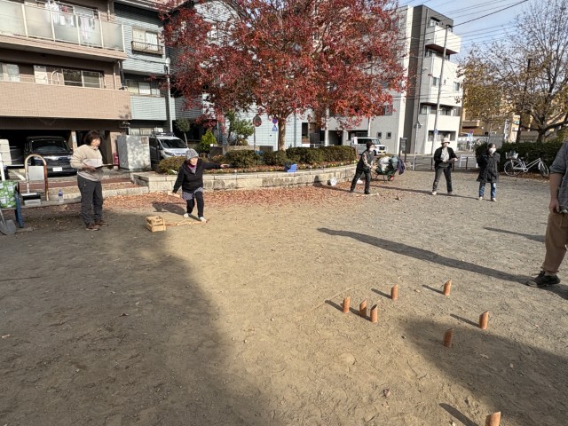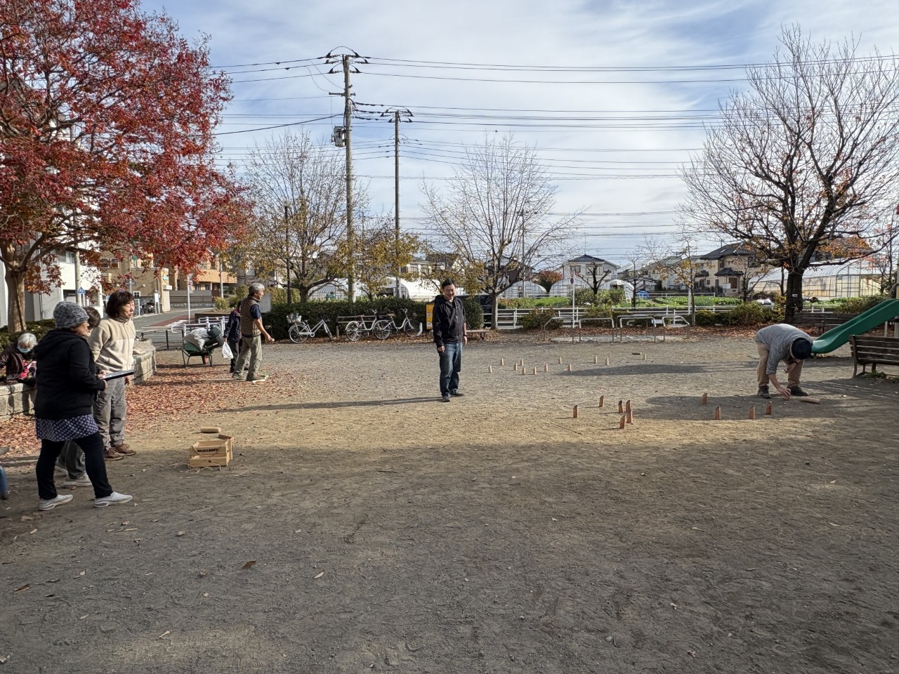 ボランティア参加していたモルック未体験の自治会員さんへお声がけし、「モルック」を体験してもらいました。